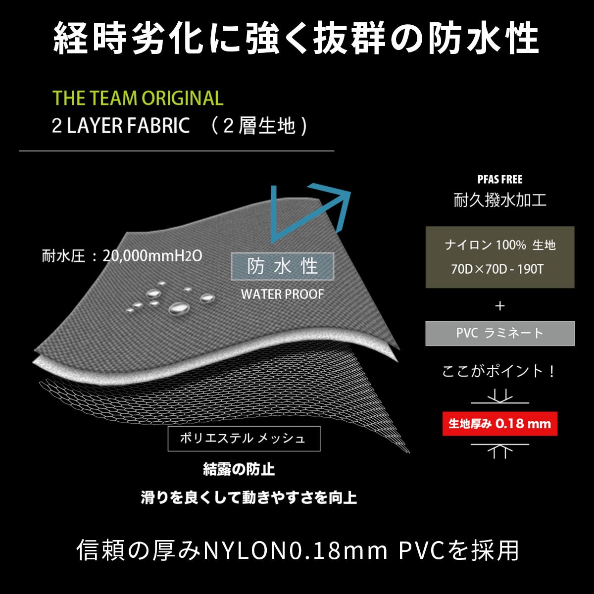 表地:ナイロン100%(ポリ塩化ビニル引き)
